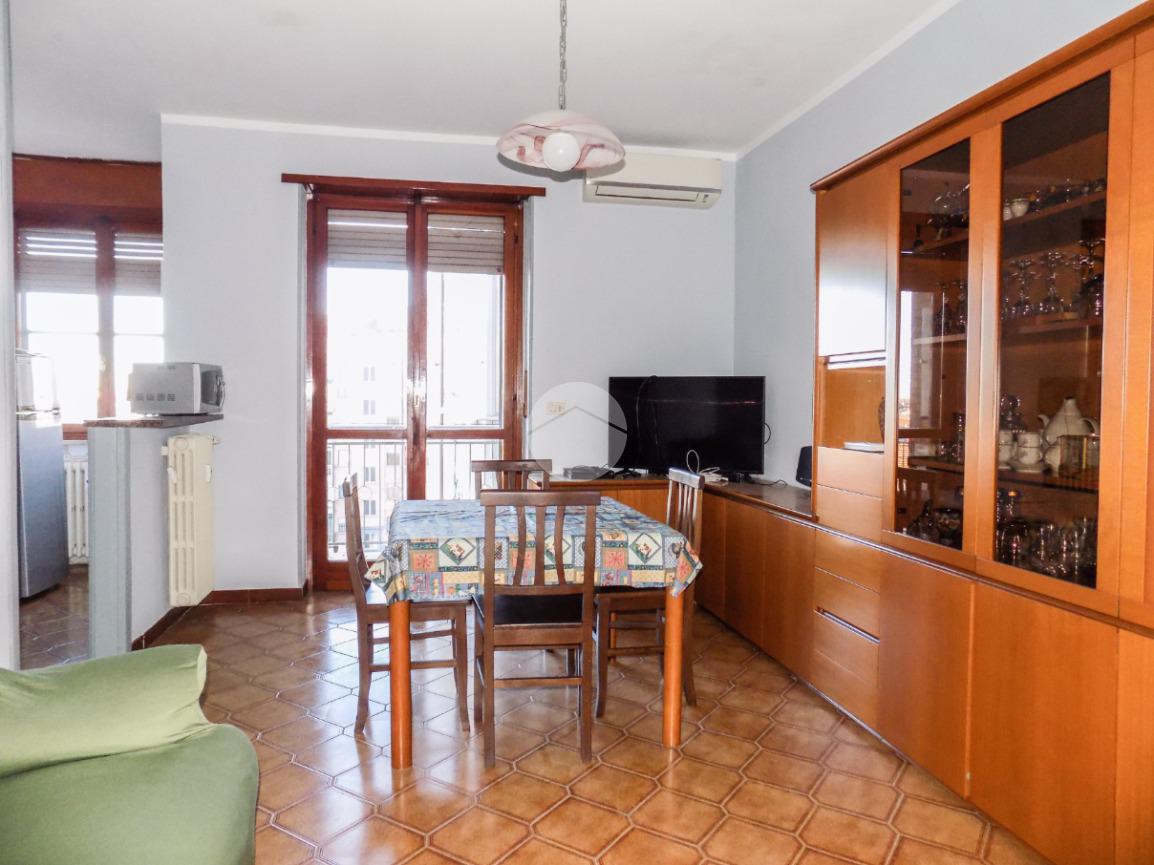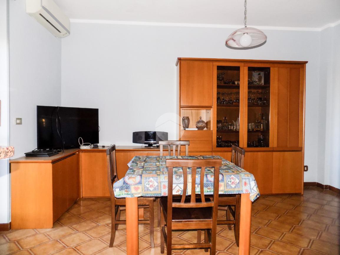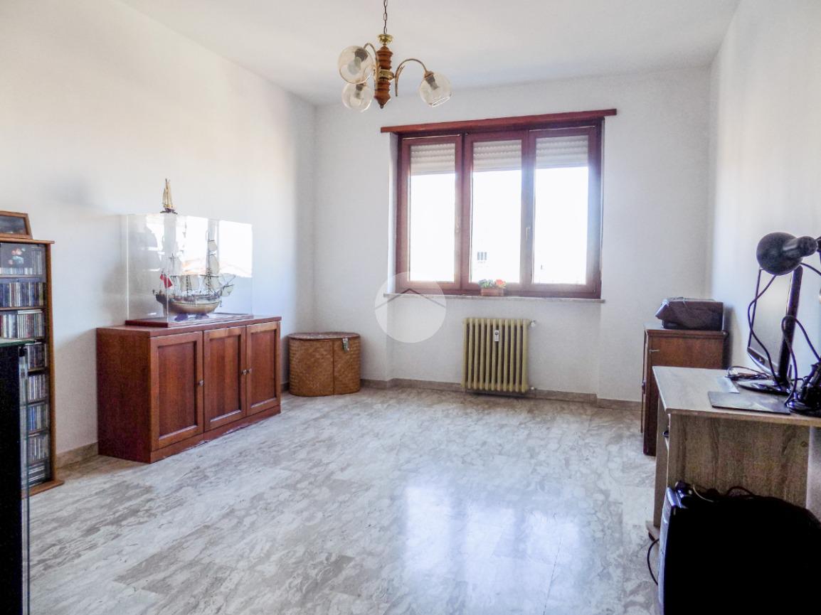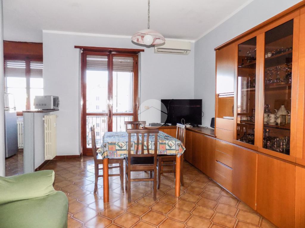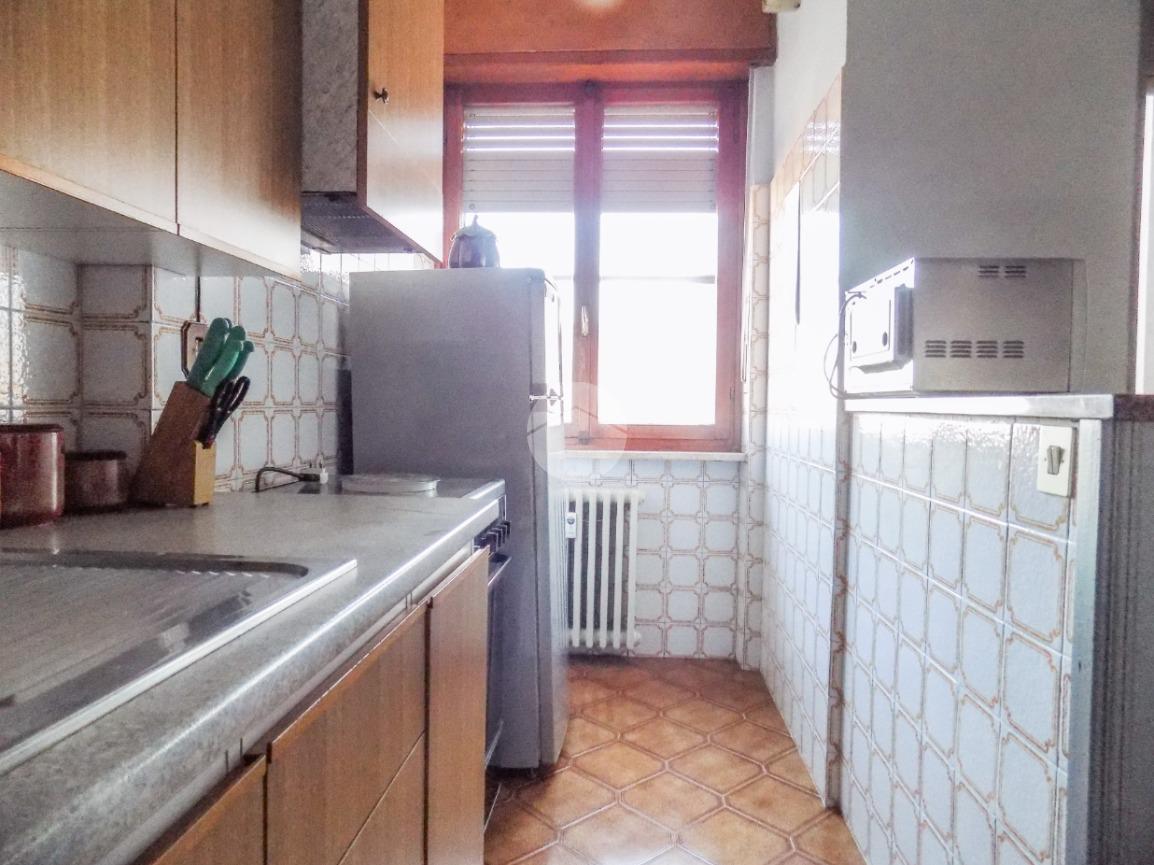Nelle immediate vicinanze del centro, dell'ospedale e dei principali servizi raggiungibili comodamente a piedi, proponiamo in vendita trilocale di generosa metratura. L'appartamento si trova al quinto piano e gode di ottima vista sul centro cittadino. Internamente si compone di ingresso su ampio disimpegno dotato di ripostiglio, comodo tinello con cucinotto, due camere da letto, spazioso antibagno e bagno con doccia. I due balconi, presenti sia nella zona giorno che nella zona notte, completano il piano abitativo. Al piano interrato, invece, trova spazio la cantina. L'alloggio gode di alcuni comfort come il climatizzatore nel tinello, infissi in doppio vetro-pvc nelle camere da letto e portoncino blindato.